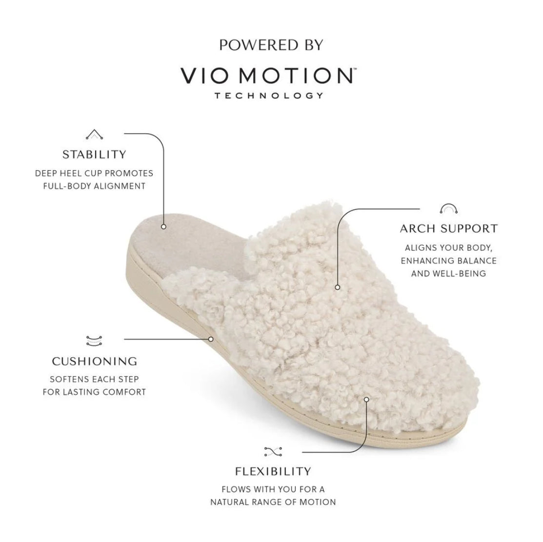 - Built-in VIO MOTION Technology footbed featuring contoured arch support, with shock-absorbing cushioning, deep heel cup to provide stability, and forefoot flexibility.