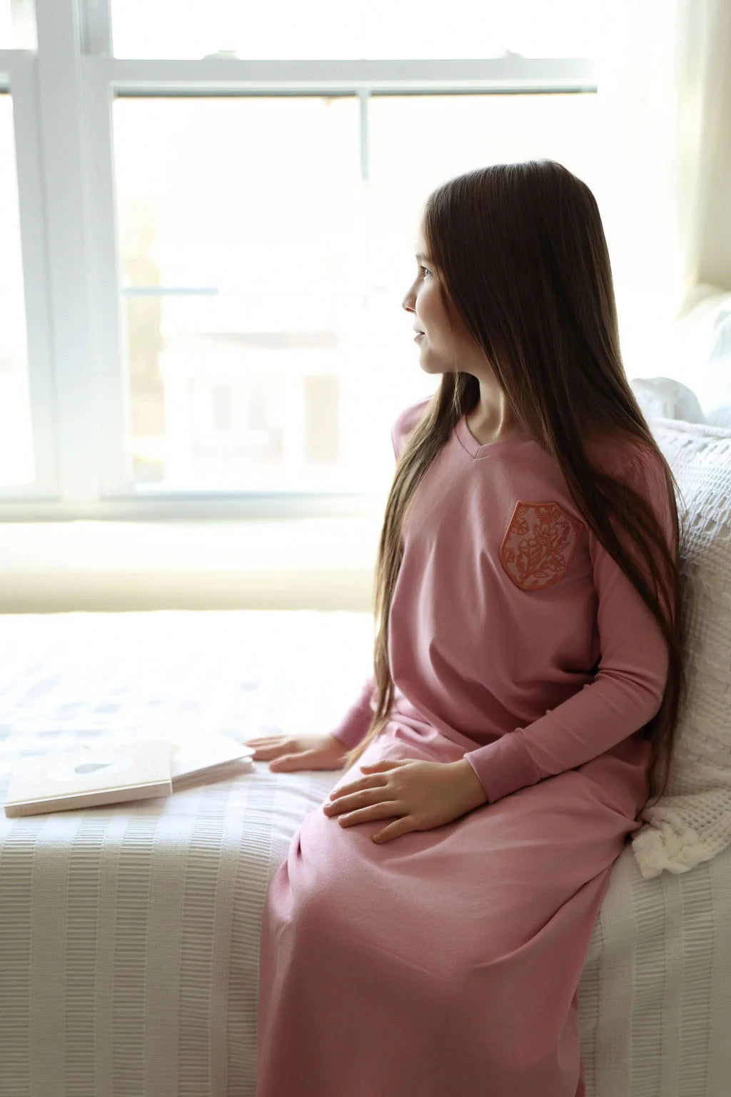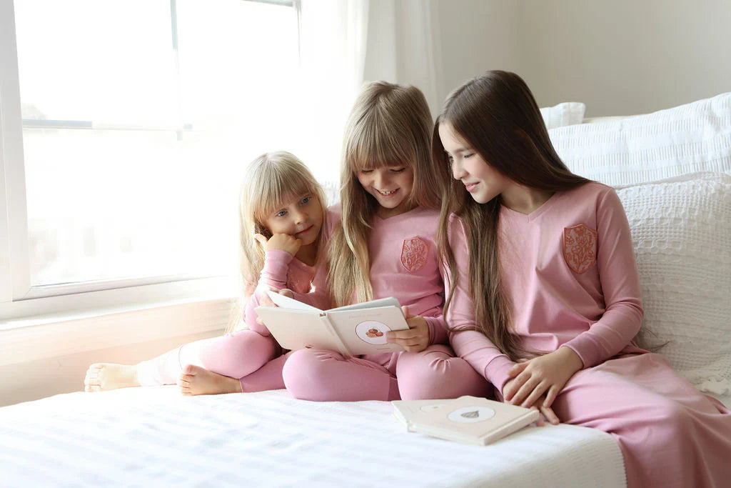 A pastel pink nightgown with a corner emblem. A simple statement that’s full of character and a pop of fun...